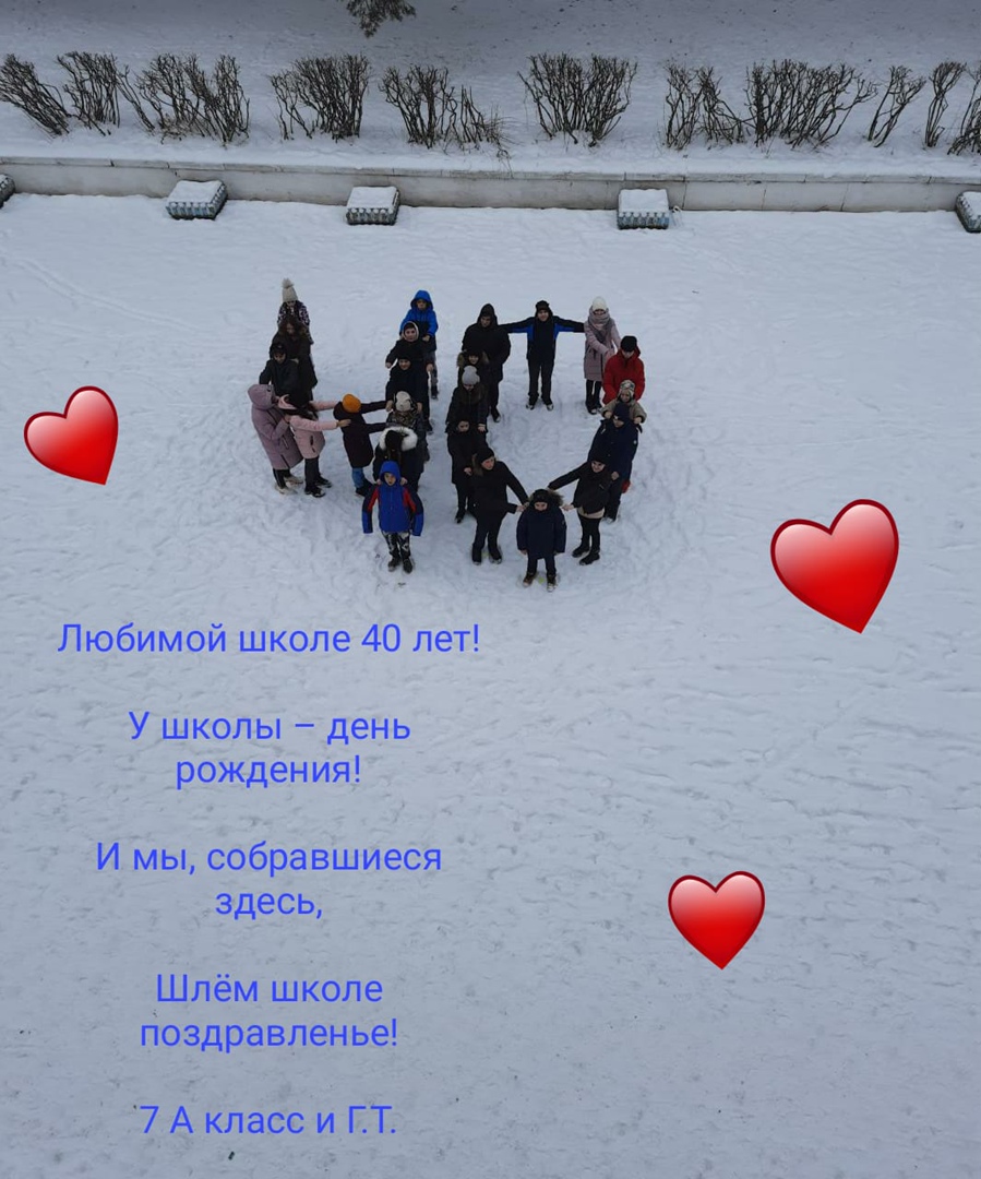 Учащиеся 7 А класса устроили флешмоб во дворе учебного заведения, чтобы поздравить любимую школу с 40-летием!