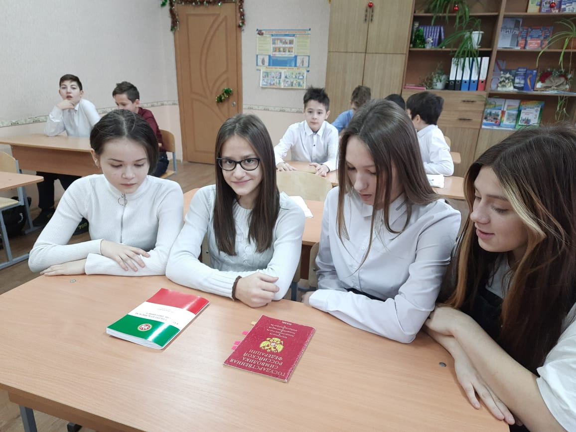11 декабря в 7 а классе прошел классный час на тему «День Конституции РФ-12 декабря».