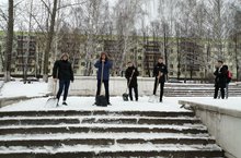 Учащиеся 10 класса облагораживают территорию школы: убирают ее от выпавшего снега. 25.11.2020