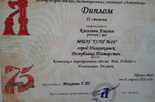 Поздравляем Киселеву Азалию ученицу 6 а класса с призовым местом в конкурсе рисунков "Весна. Май. Победа"