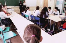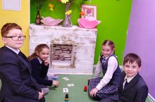 Учащиеся 4 А класса в дворовом клубе "Феникс". В преддверии праздника Весны здесь каждый нашёл занятие по душе. Одни играли в настольный теннис, другие танцевали, кто-то участвовал в викторине.Затем все вместе пили чай за одним большим столом.Праздник удался. Все дети ушли в хорошем настроении. -