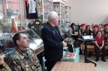 Музейный урок, посвящённый 30 летию вывода войск из Афганистана. Присутствуют почетные гости: ветеран педагогического труда, учитель физ-ры нашей школы Коновалов В.П. и воин интернационалист Котенков Владимир - выпускник нашей школы.