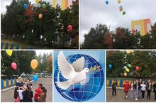 Учащиеся школы, под руководством актива Совета Старшеклассников, приняли участие в международной акции " Голубь мира". Дети вырезали из бумаги белых голубей, написали на них имена погибших в ВОв солдат и запустили их с шариками в небо.