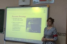 На этом уроке классный руководитель Руфина Раисовна показала нам очень интересную презентацию о людях с ограниченными физическими возможностями: о слепоглухих. Учащиеся беседовали и рассуждали о том, как мы, здоровые физически люди, можем помочь тем, кто, действительно, в этом нуждается. Такие уроки очень полезны, они заставляют задуматься, пересматреть свое отношение к жизни.