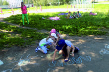 Для детей из пришкольного лагеря 2 июня проводился конкурс « Рисунки на асфальте» на тему « Лето»