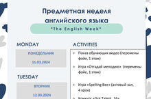 С 11 марта стартует предметная неделя английского языка. С понедельника по пятницу всех ребят ожидает насыщенная неделя