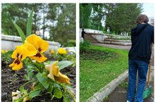 Наши ребята стараются делать нашу пришкольную территорию очень красивой. Ежедневно ведутся работы по облагораживанию нашей территории. Вы только посмотрите, какая красота! Всё играет и сверкает, словно жемчуга.Ах, какая акварель! Ах, какие краски! Яркие и сочные...