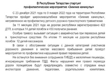 С 23 декабря 2021 года по 9 января 2022 года на территории Республики Татарстан пройдет широкомасштабное мероприятие «Зимние каникулы», направленное на профилактику детского дорожно-транспортного травматизма.