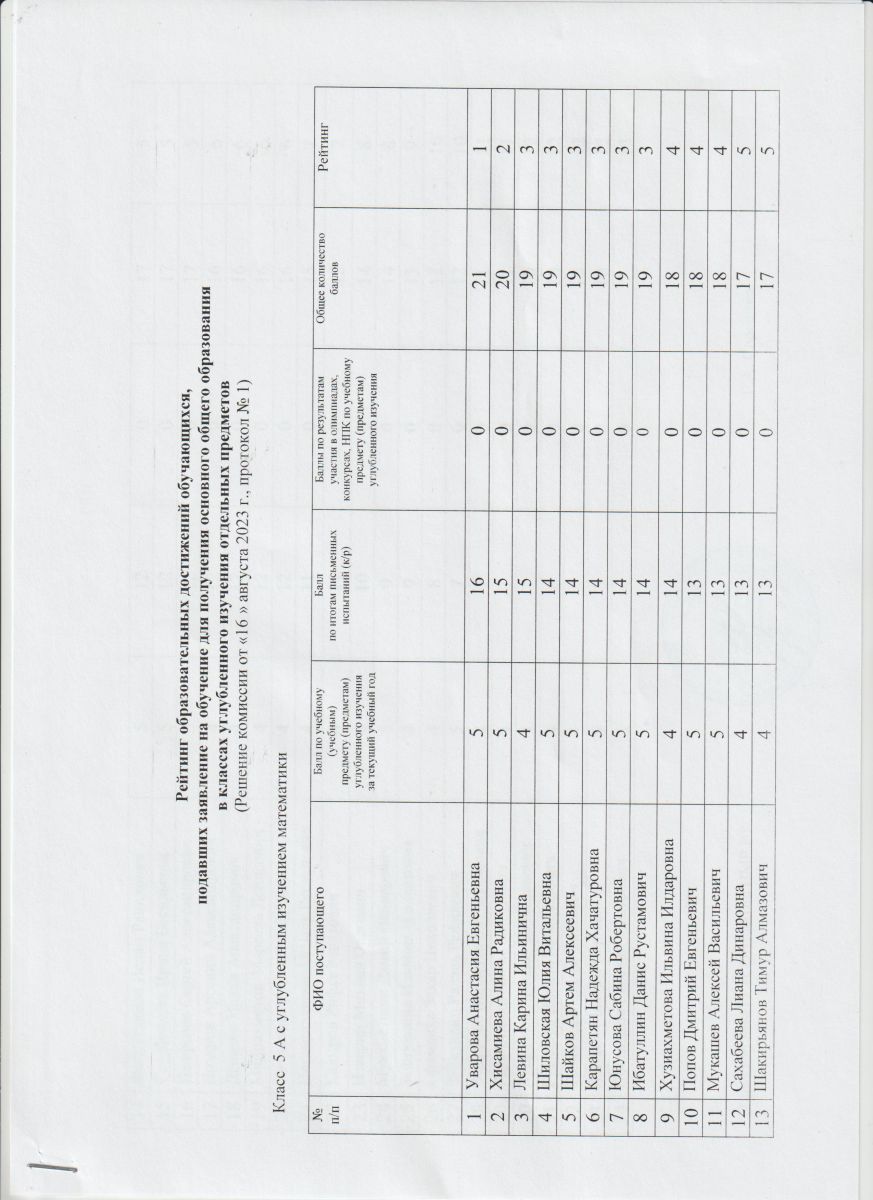 Информация о комплектовании 5 классов с углубленным изучением отдельных предметов