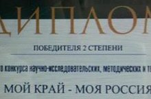 Поздравляем Зайнуллина В., ученика 7 Б класса дипломом 2 степени в конкурсе научно - исследовательских работ "Мой край- моя Россия"
