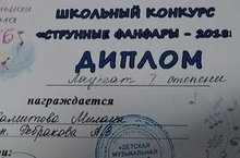Ученица 7 б класса Хамитова Милана стала обладателем лауреата Iстепени в игре на струнно - смычковых инструментах!Гордимся нашими учениками!
