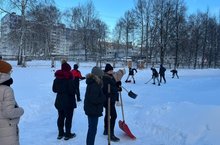 Учащиеся старших классов приняли участие в уборке снега на территории школы.