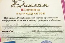 Барышева Кристина, ученица 9б класса, Яшкильдина Владлена, ученица 9в класса, Касимова Дарья, ученица 6в класса стали призерами в Республиканской научно-исследовательской конференции «Что, как и почему-разберусь и объясню», проведенной в г.Набережные Челны . Учителя, подготовившие призеров Ахметова Р.И. и Исаева О.И., обобщили опыт работы в номинации «Методическая шкатулка».