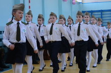 Поздравляем наш младший взвод учащихся 3 б класса (кл.руководитель Комлева .Л.В.), который принимал участие в зональном смотре строя и песни и получил номинацию ""Сегодня школьники, завтра защитники!"