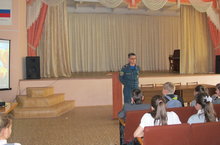 В рамках месячника по пожарной безопасности в школе проведена лекция с учащимися среднего школьного возраста: «Причины возникновения пожаров», «Первичные средства пожаротушения и их применение на пожаре», «Как вести себя в экстремальных ситуациях и на пожаре»;