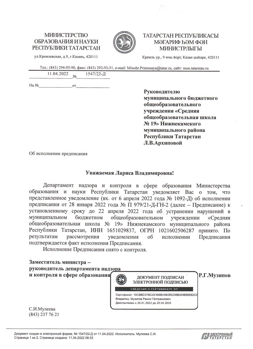 Муниципальное бюджетное общеобразовательное учреждение «Средняя общеобразовательная школа №19» Нижнекамского муниципального района Республики Татарстан