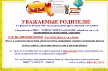 Уважаемые выпускники, родители (законные представители), зарегистрированных на закрепленной за школой территории. В 2020-2021 открывается один 10 класс - 25 учащихся.