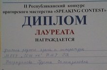 Республиканский конкурс ораторского мастерства “Speaking Contest” 21.12.2018