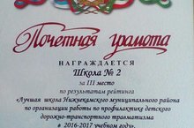 Лучшая школа Нижнекамского муниципального района по организации работы по профилактике детского дорожно-транспортного травматизма в 2016-2017 учебном году 04.09.2017