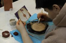 Ребята 6А класса не только плетут маскировочные сети, но и повышают свои навыки в лепке. Посетили творческую мастерскую "Черный Единорог". Клуб имеет разные направления. В нем занимаются историческим фехтованием, есть гончарная мастерская, там есть занятия для любителей исторической реконструкции. Ребята примерили тяжелые кольчуги, металлические шлемы, деревянные и железные щиты. А самое главное - создали керамические изделия, которые потом будут напоминать об осенних каникулах.