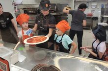 .Да, да, и готовили они в настоящей пиццерии, на настоящей кухне. Кстати, может вы подумали, что пиццу, которую готовили первоклассники, отдали заказчикам - разумеется никому ее не отдали, они съели ее сами! -