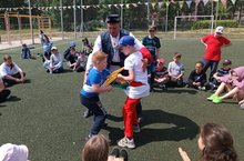 Во дворе школы для воспитанников пришкольного лагеря организовали и провели конкурс рисунков на асфальте « Я рисую детство».
