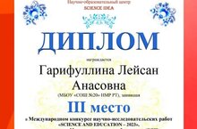 Участие Международном конкурсе научно-исследовательских работ «SCIENCE AND EDUCATION – 2023» 26.01.2023