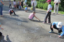Мы играем , рисуем, строим замки на песке, работаем на пришкольном участке и конечно отдыхаем.