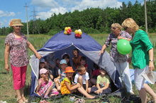Дети из пришкольного лагеря "Веселые ребята" вместе с учителем ОБЖ ходили на экскурсию на лесную поляну, где ребята познакомились с компасом, учились ставить палатку и где провели викторину "Юный следопыт".