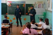 Традиционно в первые учебные дни в школе прошли уроки по основам безопасности жизнедеятельности с участием сотрудников пожарно-спасательной части #62. 05.09.2023