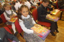 Для первоклассников школы был проведен праздник "Посвящение в первоклассники" , приуроченный Году Литературы. В этом году к нам поступило 79 первоклассников, именно для них и было устроено мероприятие. Каждому из детей была подарена литературная "Азбука" на русском и татарском языках от мэра города Айдара Метшина.