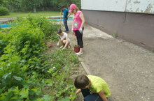 Трудовые отряды школьников ежедневно работают на территории школы под руководством учителя биологии Шумкиной Н.П.: перекапывают грядки, сажают новые цветы, поливают, пропалывают, убираются на территории школы.