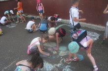 Сегодня подопечные из пришкольного лагеря рисовали мелками на асфальте. У того, кто ещё не умеет рисовать, был прекрасный шанс научиться. Каждый из ребят смог почувствовать себя настоящим художником, который создает красивые шедевры.