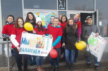 Школьный актив участвовал в городской акции "Мы за здоровый образ жизни!". Акция проходила около торгового центра "Барс-4". Наши ребята проводили Флешмоб для других активистов школ; раздавали прохожим стикеры и желали здоровья.