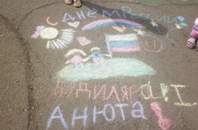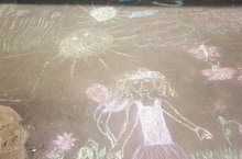В летнем пришкольном оздоровительном лагере "Зорька" был проведен конкурс рисунков на асфальте. Дети рисовали родителей, природу, животных яркими мелками.