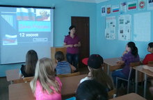 Дети пришкольного лагеря «Зорька» в честь Дня России организовали выставку рисунков на стенде. Был проведен конкурс рисунков по данной тематике на асфальте, победителей поощряла учитель начальных классов Алиева И.Г.