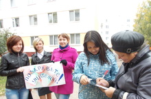 На территории 20-го микрорайона всем прохожим раздавали красочные открытки с поздравлением для учителя.