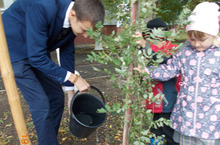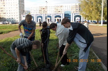 Посадка деревьев на территории нашей школы продолжается. 19 сентября учащиеся 1-х и 11-го классов вместе с учителями и директором школы, а также ветеранами 20-го микрорайона посадили новую аллею.