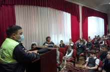 Сотрудник ГИБДД подробно рассказал учащимся о правилах дорожного движения.