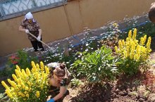 Сегодня в ТОШ работа на клумбах: прополка,рыхление и подсаживание цветов