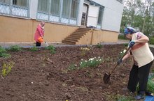 Продолжается месячник "Эко-весна 2018". На пришкольном участке началась подготовка клумб к посадке.