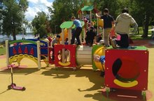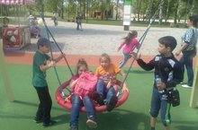 Наши ребята из пришкольного оздоровительного лагеря "Зорька" играют в парке " Семья".