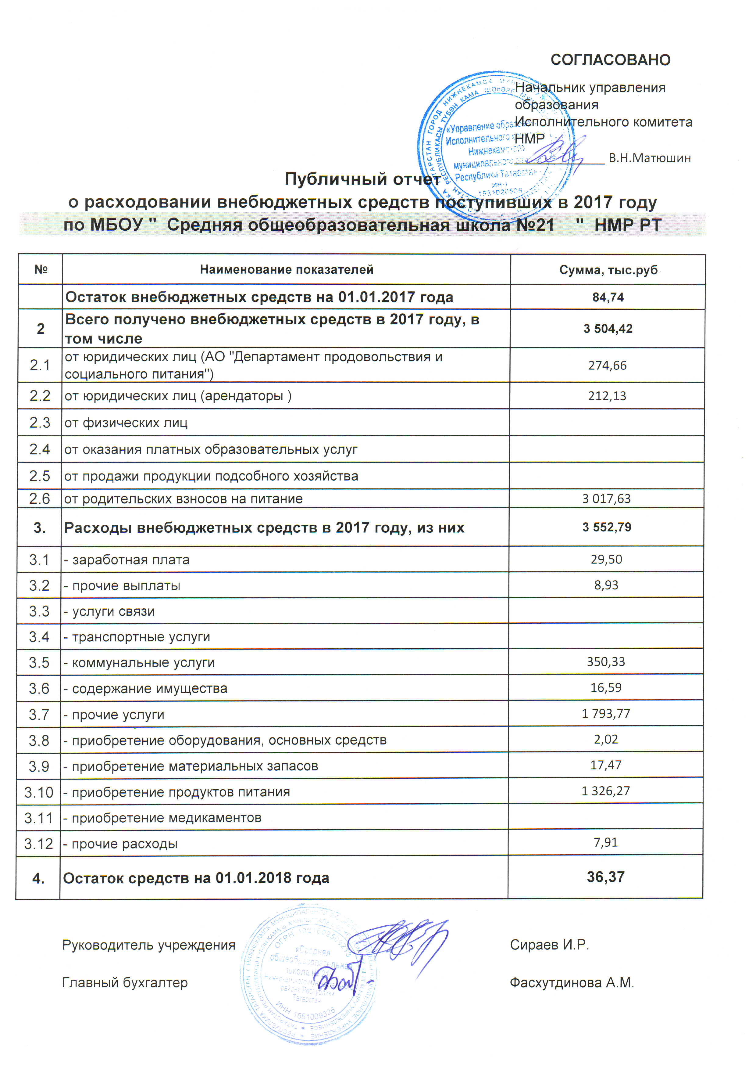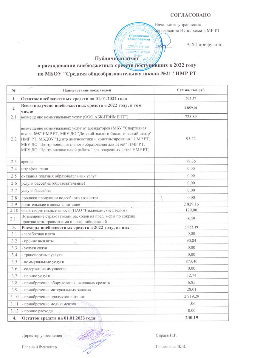 Публичный отчет о расходовании внебюджетных средств поступивших в 2021 году