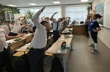 Неделя физкультуры и спорта продолжается. Финал игр по волейболу среди учащихся и команды учителей. Выиграла команда учащихся 9А класса. Молодцы!