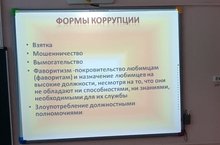 В 5 Б классе прошел классный час « Вместе против коррупции». Учащиеся ознакомились с определением коррупции, с видами коррупции, с причинами, из-за которых в жизни возникает коррупция. Ребята выполнили тестовые задания на определение видов коррупции. Вся информация сопровождалась презентацией. Классный руководитель: Кунгурова Г.Р.