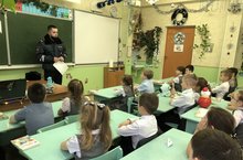 Сегодня 23 декабря в школе состоялась встреча с инспектором ОРДПС ОГИБДД УМВД России по Республике Татарстан Кильдюшовым Олегом Владимировичем. В преддверии новогодних праздников и зимних каникул младший сержант полиции рассказал первоклассникам основные правила дорожного движения и предупредил об их неукоснительном соблюдении.