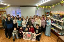 Первый день пришкольного лагеря 5а и 5б посетил городскую библиотеку , где прошёл новогодний праздник!