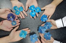 В честь замечательного праздника, ученики своими руками сделали подарки своим мамам. Один из таких подарков - незабудка, символ дня Матери. -