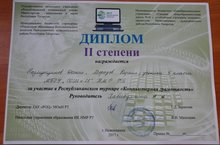Республиканский турнир "Компьютерная грамотность" проходил в два тура. От 1Б класса участвовали Наумова Карина и Камалов Тагир. Участников было много, конкуренция - большая. Во второй - очный этап прошла Карина со своей работой "Мой дворик". Задания были разнообразными, интересными и трудными. Карина достойно защитила честь нашей школы и заняла 2-ое место. Так держать!