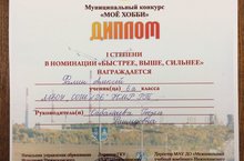 Поздравляем ученика 6 А класса, Фалина Алексея и руководителя Сабанаеву Гюзель Рашидовну, с победой в муниципальном конкурсе "Мое хобби". Они награждены дипломом 1 степени в номинации "Быстрее, выше, сильнее". Также хотим поздравить Косову Арину, ученицу 5 Б класса (руководитель: Полуляхова Н.А.) с получением диплома 1 степени в номинации "Страна искусства". Желаем ребятам дальнейшей плодотворной работы и успехов.